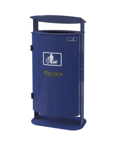 "description": "HxBxT 1000x475x340mm, 60l, m. Bodenplatte, Korpus feuerverzinkt/pulverbeschichtet, m. Schutzdach/Ascher",