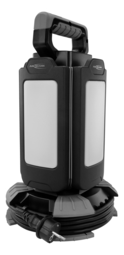 Mit 4 einzeln, im 70° Winkel ausklappbare Panels für diffuse und blendfreie Abstrahlung, Stativ-Arretierung zur Befestigung auf jedem Stativ mit einem Rohrdurchmesser von 25-32 mm und einer integrierten Vorrichtung zur Kabelaufwicklung mit Kabelklemme zur Fixierung. Leuchtdauer 30000 h (bei von/bis-Angaben wird von max. Lumen bzw. min. Lumen ausgegangen). Abstrahlwinkel 360 °. Mit Kabel. Temperaturbeständig von -20 °C bis +50 °C. Schutzart IP54: Staubablagerung im Inneren, Spritzwasser alle Richtungen.