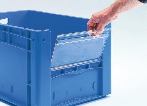 "title": "BITO Euronorm-Sichtlagerbehälter mit Eingrifföffnung, blau, HxLxB 420x600x400 mm",
