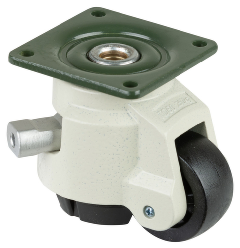 "description": "Tragl. 500kg, Polyamid-Bereifung, Rad Ø 62mm, Gleitlager, Nivellierfuß-Feststeller, m. Rückenloch",