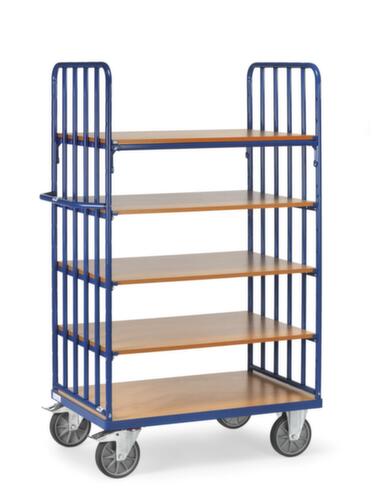 "description": "Tragl. 500kg, 5 Etage(n), Ladefl. LxB 1000x600mm, Holzetage, RAL5007, Vollgummi-Bereifung",