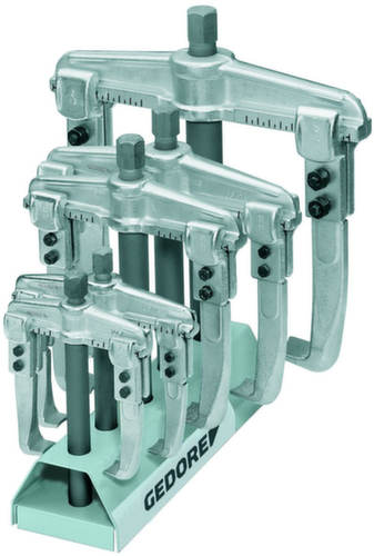 "longDescription": "Composé de 5 extracteurs de différentes tailles avec crochets d'extraction standard ou à serrage rapide ou crochets tout acier avec frein de crochet, échelle de réglage pour ajuster uniformément les crochets d'extraction. Permet un arrachage centré et optimisé en termes de force, même en cas de forces d'arrachage élevées. Pour des portées jusqu'à Ø 250 mm extérieur, Ø 330 mm intérieur, et des profondeurs de serrage jusqu'à 200 mm.<br>",