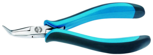 "longDescription": "Mâchoires coudées à 45°, fines, à bout plat et arrondi, surfaces de préhension à fine coupe transversale, Avec ressort d'ouverture, ESD = décharge électrique (Electro Static Discharge)<br>",