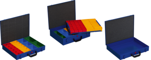 "longDescription": "<h2>Mallette d'assortiment</h2><strong>contenu protégé contre le glissement grâce au couvercle capitonné</strong><br><ul><li><strong>Pour un usage professionnel</strong> - mallette en tôle d'acier avec peinture époxy antirayures</li></ul><h3>Le choix vous appartient :</h3><ul><li><strong>Pour un garnissage personnalisé ou prête à l'emploi</strong> - mallette au choix vide ou avec bacs de rangement en polystyrène</li></ul>",