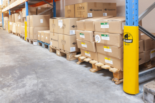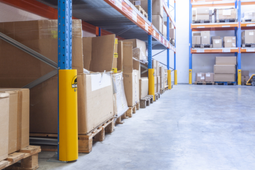 "description": "pour intérieur et extérieur, H 600 mm, pour montant de rayonnage largeur 70-130 mm, force d'impact 2,4 t, PP-C, jaune",
