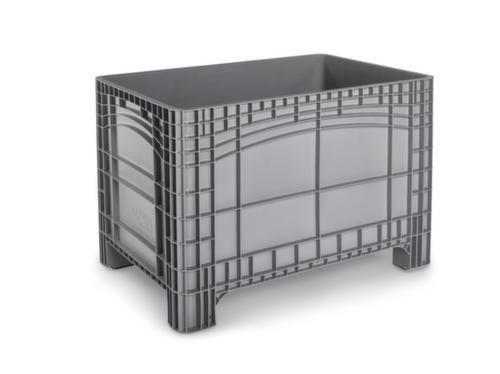 "description": "HxLxl 950x1200x800mm, 535l, PE, gris, parois pleines, fond plein, 4 roulettes pivotantes",