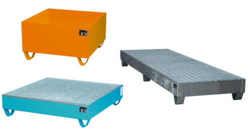 "longDescription": "<h2>Plateau d'égouttage</h2><strong>pour un stockage sûr sous le toit</strong><br><ul><li>Convient aux substances polluantes pour l'eau et inflammables.</li><li>Construction robuste en tôle d'acier</li><li>Convient pour le transport par chariot élévateur à fourche grâce à une hauteur inférieure pratique.</li></ul><br><h3>Vous avez le choix :</h3><ul><li>Durable ou accrocheur - surface galvanisée à chaud ou avec une peinture colorée.</li><li>Pour un volume de collecte encore plus important, en option avec une grille amovible</li></ul><br><strong>Dispositions légales</strong><br>Construction des bacs de rétent. agréée par les autorités. Pour le stockage abrité de produits dangereux pour l’eau et inflammables.<br>",