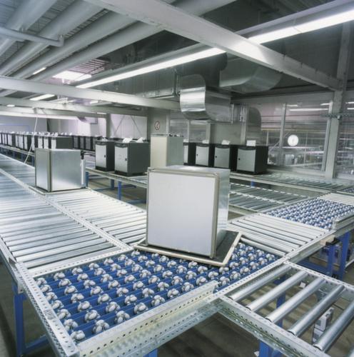 "description": "rouleau de manutention en acier, roulette Ø 50mm, convoyeur Lxl 3m x 500mm, empattement 75mm",