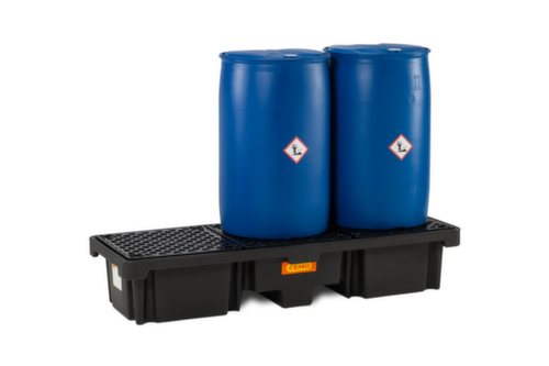 "longDescription": "<h2>Plateau collecteur en PE</h2><strong>pour contenir des fûts de 200 litres</strong><br><ul><li>Convient pour les substances polluantes et corrosives.</li><li>Pratiquement équipé de grilles</li><li>Haute résistance chimique - en polyéthylène</li><li>Transport facile grâce aux poches pour chariots élévateurs à fourche qui peuvent être conduites en dessous.</li></ul>",