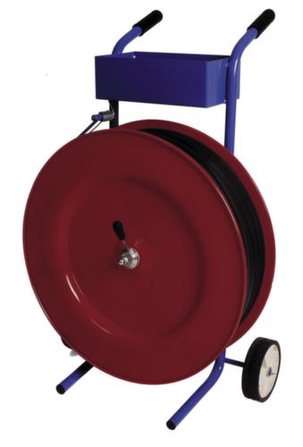 "longDescription": "<h2>Dérouleur mobile</h2><strong>pour feuillards de cerclage en polypropylène</strong><br><ul><li>Convient pour les grands rouleaux</li><li><strong>Suffisamment d'espace</strong> - avec bac de rangement pour douilles et appareils</li><li><strong>Facile à arrêter</strong> -grâce au frein à étrier</li><li>Construction robuste en tôle d'acier</li><li>Longue durée de vie grâce à la surface laquée</li></ul>",