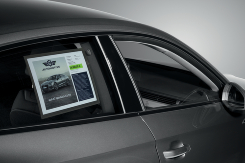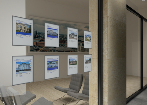 "description": "adhésion statique, au format DIN A4, transparente avec cadre en plastique gris",