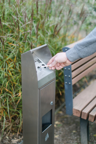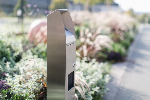 "metaDescription": "Cendrier poubelle en acier inoxydable BLOCK - HxlxP 1000x240x190mm, poubelle capacité 4l, à cheviller, corps acier inoxydable",