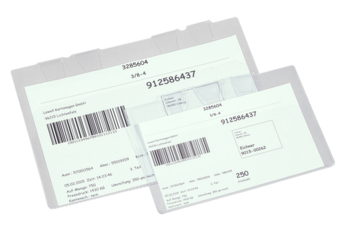 "description": "DIN A5, paysage, Hxl 165x237mm, à accrocher, film dur, transparent",