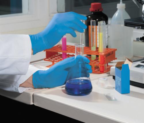 "description": "latex naturel, bleu, intérieur chloré, doigt grenelé, taille 8, L 245mm",