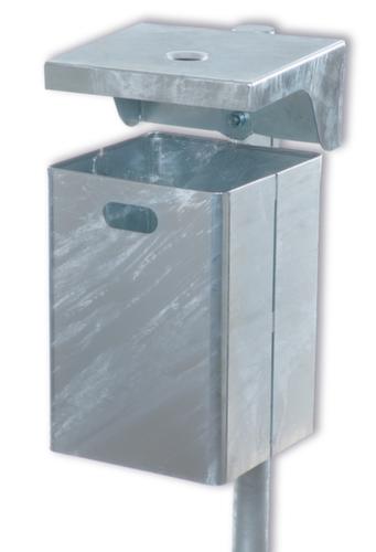 "description": "HxlxP 440x310x310mm, poubelle capacité 40l, à sceller dans béton, corps galvanisé à chaud, a. toit protec.",