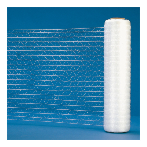 Le filet étirable est très résistant et permet de stabiliser les marchandises. Le film manuel perforé empêche la formation d'eau de condensation. La condensation peut normalement se produire soit avec des produits conditionnés à chaud, comme les boissons, soit avec des produits réfrigérés/congelés. Le filet étirable est également souvent utilisé pour les produits frais (fruits/légumes) ou les plantes, car l'échange d'air est très important dans ce cas. - Efficace : jusqu'à 75% de longueur en plus grâce à une grande extensibilité- 75% d'extensibilité = 1015 m après l'étirement- Matériau : PE. Longueur : 580 m. Largeur : 500 mm. Ø du mandrin du rouleau : 50 mm- Unité d'emballage : 6 rouleaux