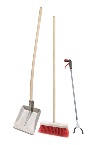 1 pince ramasse-débris, 1 balai de rue, 1 pelle à rebords