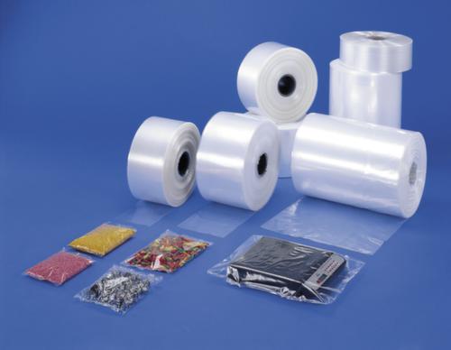 "longDescription": "<h2>Gaine de film</h2><strong>pour l'emballage de marchandises de différentes longueurs</strong><br><ul><li>Emballage individuel - il suffit de le couper à la longueur souhaitée</li><li><strong>Protège</strong> contre les intempéries et la saleté</li><li><strong>Grande résistance et extensible</strong> - en PEBD</li><li><strong>Fermeture sûre</strong> avec appareils de soudure, torsadeuses ou lieuses</li></ul>",
