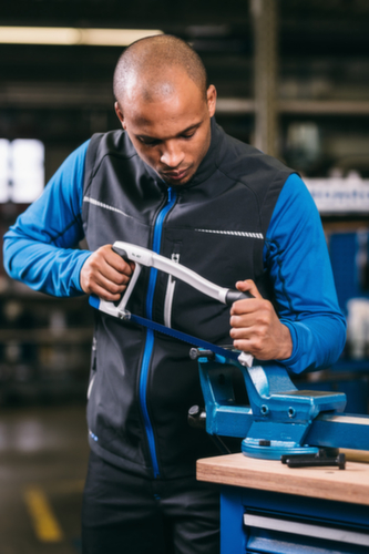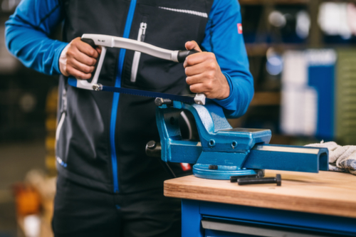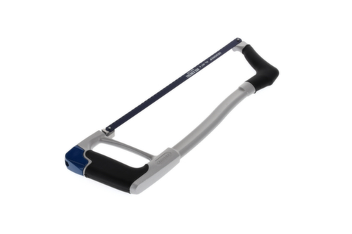 "longDescription": "Pour le tronçonnage des métaux et de l'acier, Scie à métaux polyvalente et robuste avec possibilité de réglage, Pour répondre au mieux à l'utilisation respective, la lame de scie peut être utilisée aussi bien verticalement qu'inclinée à 40°, Utilisation pratique, Fonction de serrage sans outil de la lame de scie grâce à l'élément de serrage bleu dans la poignée, Des goupilles de serrage imperdables fixent la lame de scie, Un travail ergonomique et une longue durée de vie sont garantis par la combinaison de l'étrier léger en aluminium et d'une poignée souple et coudée, Lame de scie bimétal 407 A<br>",