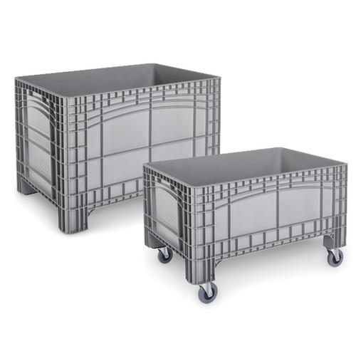 "description": "HxLxl 950x1200x800mm, 535l, PE, gris, parois pleines, fond plein, 4 roulettes pivotantes",