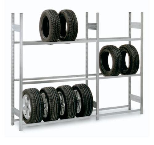 "description": "rayonnage départ, HxlxP 3000x1560x435mm, p. Ø de pneus 578-600mm, charge max. par tablette 150kg, 5xtraverses, unilatéral, montants galvanisé, traverses galvanisé",