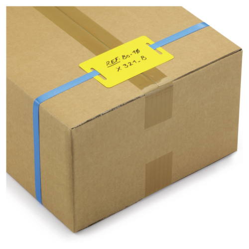 "longDescription": "<h2>Étiquettes industrielles, PEHD, pour feuillard de cerclage, jaunes</h2><p>Nos étiquettes industrielles ont des coins arrondis et peuvent être écrites au marqueur permanent de manière indélébile et résistante à l'eau. Elles peuvent être fixées à presque tous les produits à l'aide d'un fil métallique grâce à un trou prédécoupé de 5 mm de diamètre (sauf pour la référence 286207). Les étiquettes industrielles souples conviennent donc parfaitement au marquage et à l'étiquetage de vos produits et petites pièces, même à l'extérieur.Vous avez le choix entre des étiquettes industrielles en métal et en PEHD. Les étiquettes en métal sont laquées en blanc, pliables et résistantes aux températures élevées. Les étiquettes en PEHD sont résistantes aux basses températures, aux produits chimiques et aux graisses et conviennent donc parfaitement au secteur de la chimie. Les étiquettes industrielles en PEHD sont disponibles en cinq couleurs différentes, ce qui vous permet d'identifier vos produits par couleur. Spécialement pour les feuillards de cerclage, nous vous proposons également les étiquettes jaunes en PEHD avec deux perforations pour le passage pratique du feuillard (référence 286207). Vous pouvez également fixer les autres étiquettes industrielles sur les bandes de cerclage, les grillages et les sacs à l'aide de notre système de fixation d'étiquettes.Détails supplémentaires : - Toutes les étiquettes industrielles disposent d'un trou prédécoupé (Ø 5 mm) pour la fixation (sauf la référence no. 286207 : deux perforations pour la fixation du feuillard de cerclage (L 35 x l 5 mm))- La livraison s'effectue sans fil métallique (sauf références 286185, 286186, 286190 : livraison avec fil métallique fixé avec gaine plastique (L 25 mm))</p><br>",