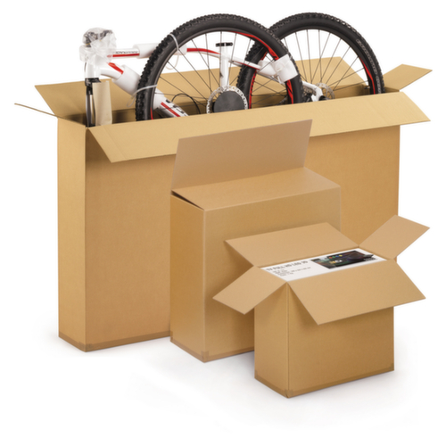 Les cartons pour produits plats sont extrêmement robustes et résistants. Grâce à la grande ouverture, même les produits encombrants et de grande taille peuvent être placés très facilement dans le carton. Les rabats du couvercle et du fond qui se chevauchent offrent alors une protection et une résistance aux chocs particulières. Le carton est idéal pour les magasins de bricolage, les magasins de meubles et les produits grands mais plats de tous les secteurs. - Grande ouverture pour faciliter le remplissage de votre carton ou l'utilisation de matériaux de remplissage et de calage- La couverture extérieure de tous les cartons est en papier kraft et garantit une résistance et une stabilité maximales grâce à un solide tressage de fibres étroitement lié- Carton renforcé à une seule cannelure- Qualité 30 kg- Livraison à plat et donc peu encombrante pour le stockage