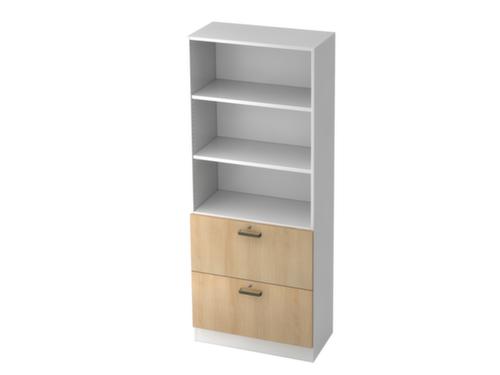 }Rayonnages boulonnés combinés Up and Down avec tiroirs HR, 3 compartiments de rayonnage, largeur 800 mm, blanc/chêne