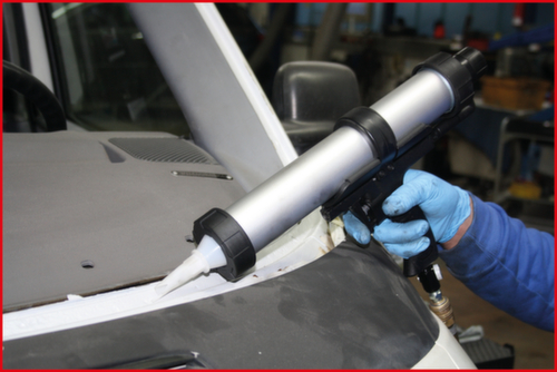"longDescription": "pour le traitement des cartouches et des softpacks, idéal pour les cartouches d'adhésif à base de silicone ou d'acrylique, pour le collage des pare-brise et de la plupart des vitres arrière et latérales, peut également être utilisé pour le mastic de carrosserie, l'adhésif de couture, etc, guidage parfait du piston de la cartouche grâce au principe télescopique, donc pas de basculement du piston ni de poches d'air, mécanisme anti-gouttes, alimentation en continu, avec deux adaptateurs pour cartouche et sac, avec soupape de surpression de sécurité, y compris régulation de l'air comprimé pour la vitesse de sortie, boîtier pratique et ergonomique à 2 composants, boîtier en aluminium, poignée en plastique<br>",