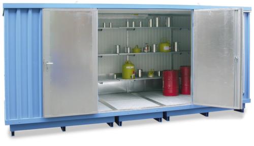 "description": "isolé, p. substances danger./combustibles, HxlxP 2385x2875x6075mm, bac de rétention 2800l, galvanisé",