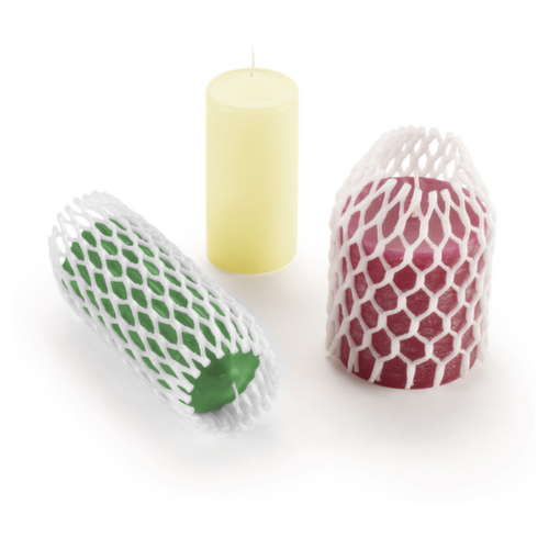 Le filet protège de manière optimale les produits fragiles de différentes tailles jusqu'à un diamètre de 12 cm. Le filet de protection peut être utilisé de manière polyvalente, par exemple dans l'industrie automobile, la mécanique, la vitrerie, etc. Grâce à son élasticité, le filet s'adapte également aux produits de forme irrégulière, comme les bouteilles. - Matériau : mousse PE- Haute résilience- Le contenu reste visible grâce à la structure du filet- Facile à utiliser : se coupe avec des ciseaux et s'enfile facilement- Livrable prédécoupé ou en rouleau