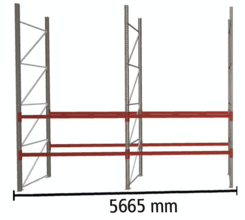 }META Rayonnage à palettes MULTIPAL pour 12 palettes, largeur 5665 mm, 3 niveaux de stockage