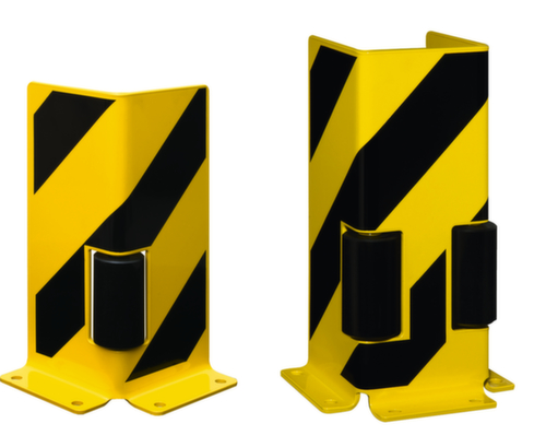 "longDescription": "<h2>Protection contre les collisions</h2><strong>durée de vie plus longue grâce au rouleau de guidage</strong><br><ul><li>Les chocs sont absorbés et déviés latéralement.</li><li>Effet de signal - jaune avec bandes de signalisation noires</li><li>Construction robuste en tôle d'acier</li><li>Surface extrêmement résistante grâce au revêtement en plastique.</li><li>Montage simple - plaque de base avec trous pré-percés pour le chevillage sur</li></ul><br>Vous avez le choix<br><ul><li>Protection sur 2 ou 3 côtés - en angle ou en profilé en U</li></ul>",