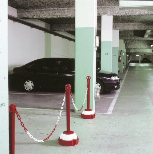 "longDescription": "<h2>Avertisseur de chaîne</h2><strong>robuste pour une utilisation en intérieur et en extérieur</strong><br><ul><li>Déploiement rapide - tête sphérique brevetée avec partie supérieure rotative permettant d'accrocher et de décrocher la chaîne d'un seul tour.</li><li>Effet de signalisation optimal - immédiatement visible dans l'obscurité grâce aux réflecteurs intégrés</li><li>Stable - la base en plastique peut être remplie de sable ou de gravier.</li><li>Léger et insensible - poteau en aluminium avec finition peinte et tête sphérique en ABS résistant aux UV</li><li>Utilisation stationnaire - base avec trous pour chevillage</li></ul><br>Lorsque l'on utilise des poteaux de barrière et des poteaux d'avertissement de chaîne, des choses très spécifiques doivent être transmises. Soit des zones doivent être bouclées, soit les gens doivent être guidés dans une certaine direction. <br>Avec l'un de ces kits de support de chaîne, vous obtenez un équipement complet pour pouvoir délimiter quelque chose rapidement et de manière mobile. La hauteur est choisie de manière à ce que les piétons et les automobilistes puissent voir facilement la barrière. C'est pourquoi les barrières sont proposées dans les combinaisons de couleurs rouge/blanc et jaune/noir.<br>Les couleurs choisies ici créent des sentiments très spécifiques chez l'observateur, qui, dans certaines circonstances, peuvent être salvateurs. <br>Les gens associent automatiquement la couleur rouge au danger. L'effet de signal génère de l'attention et veut attirer l'attention sur quelque chose. Cela permet de s'assurer que la zone interdite est visualisée mais qu'on n'y pénètre pas parce qu'une interdiction y est associée.<br>La combinaison de couleurs jaune/noir attire l'attention. Le jaune a un effet intrusif et peut faire en sorte que le spectateur se sente incité à agir. Dans ce cas, un message jaune/noir pourrait être utile si l'on veut guider les gens sur un chemin particulier. Le noir est perçu comme une couleur professionnelle et fonctionnelle.<br>Avec ce poteau d'avertissement de chaîne, vous êtes du bon côté - littéralement.<br>",