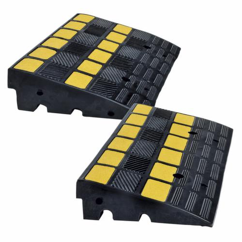 "metaDescription": "Moravia Rampe d'accès - en différentes hauteurs, avec 2 conduits de câbles, élastique, noir/jaune",