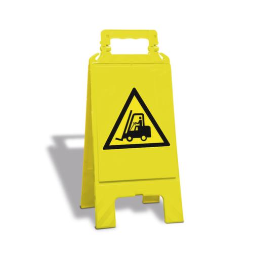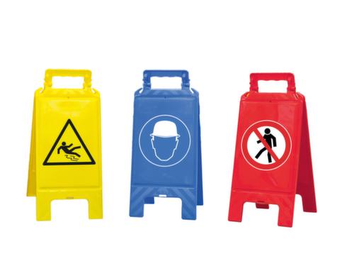 "longDescription": "<h2>Panneau d'avertissement</h2><strong>Symboles sur 2 faces</strong><br><ul><li><strong>Pour le marquage rapide et mobile</strong> de zones dangereuses</li><li><strong>Robuste et durable</strong> - en plastique</li><li><strong>Transport et stockage sûrs</strong> - verrouillable par clip en position repliée</li><li><strong>Pas de pliage accidentel</strong> - blocable en position ouverte</li><li><strong>Pour délimiter des zones complètes</strong> avec logements latéraux pour chaînes en plastique</li></ul><br><h3>Le choix vous appartient :</h3><ul><li><strong>Panneaux d'obligation</strong> indiquent à votre personnel les zones de danger exigeant le port d'un équipement de protection</li><li><strong>Panneaux d'avertissement</strong> indiquent aux personnes un danger possible</li><li><strong>Panneaux d'interdiction</strong> indiquent simplement et de manière compréhensive à vos clients, vos visiteurs et votre personnel le comportement à éviter afin de prévenir les accidents ou les dommages</li></ul>",