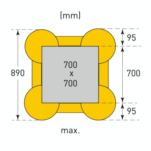 principales dimensions du Moravia système de protection anticollision MORION ECO en un coup d'œil :La structure flexible permet une adaptation sans problème à différentes tailles de colonne. Il suffit pour cela de découper les traverses sur place dans la longueur souhaitée. La graduation par pas de 50 mm facilite l'installation. en polyéthylène résistant aux chocs, coloris jaune. Pour la fixation, les quatre côtés sont insérés les uns dans les autres puis vissés - un ancrage au sol ou sur la colonne n'est pas nécessaire.