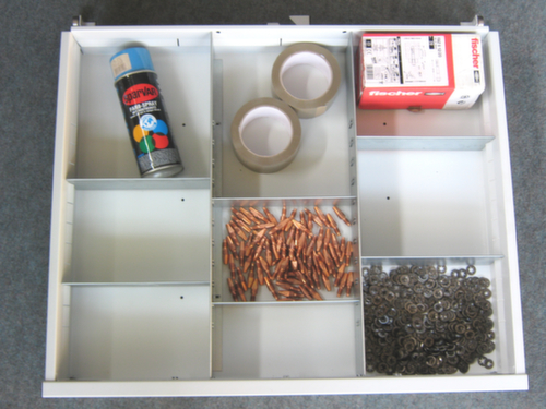 "description": "9compartiments, 2sép.longitudinaux/6sép. en tôle, Hxl 125x715mm, acier galvanisé",
