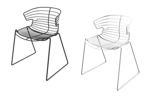 "longDescription": "<h2>Chaise visiteur</h2><ul><li>Avec coque en fil métallique ouvert</li><li>Cadre à patins avec patins de plancher</li><li>Empilable</li></ul><br>Cette chaise visiteur est absolument résistante aux intempéries et convient donc parfaitement à votre espace extérieur. Il peut être placé dans les cantines et les zones fumeurs, ainsi qu'en tant qu'accroche-regard décoratif dans la zone de réception.<br><br>La coque du siège ouvert est entièrement réalisée en fil de fer. Le laquage résistant aux intempéries empêche la surface de rouiller ou de s'écailler. Grâce au cadre antidérapant, la chaise a toujours une position ferme et les patins protègent en plus votre sol. <br><br>Si vous n'avez pas besoin de la chaise visiteur, vous pouvez l'empiler pour gagner de la place. Il prend donc peu d'espace de stockage.<br><br><strong>Bon à savoir !</strong><br>Les coussins d'assise assortis sont disponibles en accessoires dans différents coloris. Le revêtement est en polyester et le capitonnage est difficilement inflammable conformément à DIN 4102-B1.<br>",