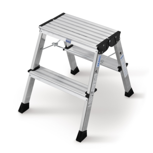 "longDescription": "<h2>Marche pliante sur roulettes</h2><strong>aluminium</strong><br><ul><li>Mobile mais stable - avec 4 roulettes à ressort pour un déplacement facile et une bonne stabilité sous charge.</li><li>Montée et descente sans accident - marches et plate-forme avec nervures antidérapantes.</li><li>Léger et robuste - fabriqué en aluminium</li></ul>",