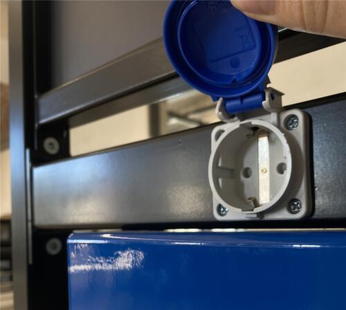 "description": "L 1300mm, 6emplacements de réglage, utilisation double face, acier galvanisé/revêtu, RAL9005, a. avec roulettes pour déplacement facile, a. prises de courant",