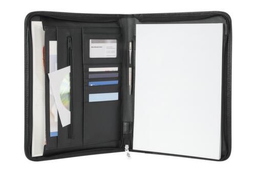 bloc-notes, boucle pour stylo, compartiment A4 et A5, compartiment à fermeture éclair, compartiment transparent pour cartes de visite, 4 porte-cartes, 2 pochettes