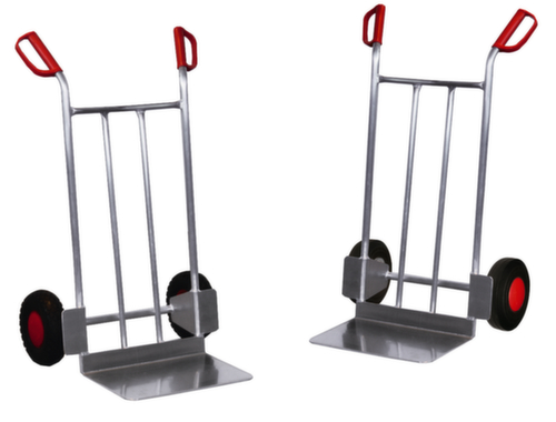 "title": "VARIOfit Diable de manutention en aluminium avec pelle particulièrement large, force 200 kg, air bandage",