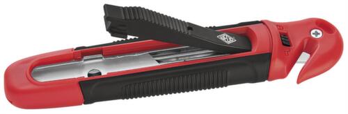 "longDescription": "<h2>Cutter de sécurité</h2><strong>avec coupe-film intégré</strong><br><ul><li><strong>Utilisation en toute sécurité</strong> - lame à ressort à rétractation automatique</li><li><strong>Remplacement de lame simple</strong> sans outil</li><li>Convient aux droitiers et aux gauchers</li></ul>",