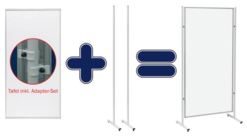 "longDescription": "<h2>Stellwandsystem</h2><strong>Präsentationstafel und Raumteiler in Einem</strong><br><ul><li>Modulares System ermöglicht Individualität und endlose Erweiterung</li><li><strong>Modernes Design</strong> - Rahmen aus silbereloxiertem Aluminium mit grauen Kunststoffecken</li><li><strong>Schlag- und kratzfest</strong> - Stützsäule aus Stahl mit Pulverbeschichtung</li><li><strong>Einfache Montage</strong> - Tafel mit Stützsäule mithilfe des mitgeliferten Montagesets verbinden</li></ul><br><strong>Sie haben die Wahl:</strong><br><ul><li><strong>Schreiboberfläche</strong> in weiß, trocken abwischbar, magnethaftend</li><li><strong>Filzoberfläche</strong> in blau oder grau, pinnbar</li><li><strong>Korkoberfläche</strong>, pinnbar</li></ul><br>Dieses Stellwandsystem der Marke Franken bietet Ihnen vielseitige Kombinationen und Nutzungsmöglichkeiten. Die Tafelelemente sind wahlweise beidseitig mit Schreiboberfläche, Filzbezug oder aus Kork. Sie haben mit dieser Stellwand beliebig viele Stellmöglichkeiten und es lässt sich nahezu in jedem Winkel aufstellen, sodass es sich optimal in Ihren Raum einfügt. Zusätzlich kann es mit einer einfachen Klemm- und Schraubmontage jederzeit beliebig erweitert werden und passt sich somit Ihren Anforderungen an. Das System kann sowohl als Raumteiler, sowie als Informations- oder Präsentationswand genutzt werden.<br><br>Die Schreiboberfläche ist trocken abwischbar und magnethaftend. Sowohl die Korkoberfläche, als auch die Filzoberfläche ist pinnbar. Der Rahmen der Tafel ist aus silbereloxiertem Aluminium mit Ecken aus Kunststoff. Die Säulen sind aus Stahlrohr mit Standfüßen. Die robuste Konstruktion macht auch den Einsatz in Produktions- oder Lagerbereichen auf Dauer möglich. Richtig eingesetzt an Messeständen oder Ausstellungen, im Empfangsbereich oder bei Veranstaltungen, sind Ihre Informationen immer perfekt platziert und präsentiert.<br><br><strong>Gut zu wissen!</strong><br><br>Bitte beachten Sie, dass die Säulen für das Stellwandsystem einzeln separat bestellt werden müssen. Wenn Sie die Stellwände regelmäßig versetzen müssen, bestellen Sie gleich pro Säule einen Rollensatz mit Feststellern mit.<br>",