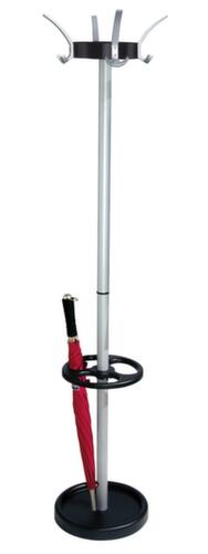 "description": "HxØ 1800x500mm, 8 Hut-/16 Mantelhaken, Schirmhalter/Tropfmulde, Stahl, alusilber/schwarz",