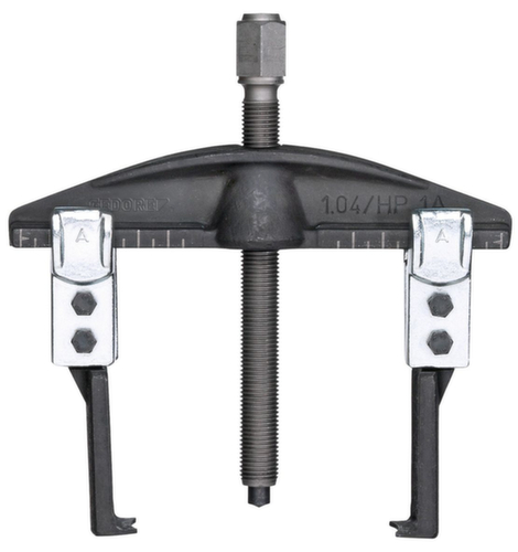 Universal-Abzieher HIGH POWER No. 1.04/HP1A-B, 2-armig, 130x100 mm|Traverse No. 107/1A03, 3-armig 180 mm|Abzughaken No. 106/A-100-B, Ganzstahl, Hakenbremse 100 mm|3x Verlängerung No. 106/A-100-VB mit Hakenbremse 100 mm|3x Abzughaken No. 106/A-100-S, schlank 100 mm|3x Abzughaken No. 106/S101-S, ohne Klemmstück|Spindel No. 1.1406200, SW 17 M14x1,5 200 mm