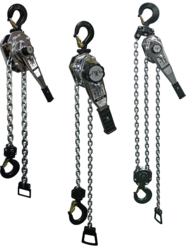 "longDescription": "<h2>Hebelzug</h2><strong>Premium-Ausführung</strong><br><ul><li>Sicherheits-Lastdruckbremse mit zwei Sperrklinken</li><li>Ober- und Unterhaken mit Sicherheitsklappen</li><li>Gegossene Hakensicherung</li><li>Standardmäßig mit 1,5 m Lastkette, hochfest gemäß DIN EN 818-7-T, vergütet und galvanisiert</li></ul><br><h3>Ergonomie:</h3><ul><li>Heben, Ziehen und Spannen in jeder Lage und in jede Richtung</li><li>Freischalthebel zum schnellen Durchziehen der Kette im unbelasteten Zustand</li><li>Großes, griffiges und geschlossenes Handrad</li><li>Handhebel, extra gesicherter Griff und stets im Eingriff aufgrund der Ratsche</li></ul><br>Der Hebelzug ist die nächste Entwicklungsstufe der Premium-Serie. Das Gehäuse ist aus verchromten Stahblech und sämtliche Verbindungstellen sind galvanisiert. Aufgrund der außerordentlich hohen Widerstandsfähigkeit und dem sehr niedrigen Reibungswiderstand hat der Hebelzug eine sehr lange Lebensdauer. Trotz des extra verstärkten Getriebe- und Bremsgehäuses besteht eine deutliche Gewichtsersparnis, welche Handhabung erheblich verbessert.<br>",