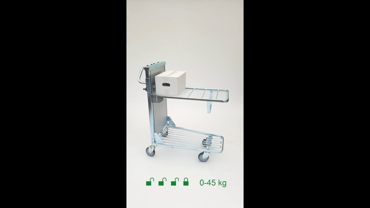 "description": "Tragl. 300kg, 2 Etage(n), Stahletage, verzinkt, TPE-Bereifung",