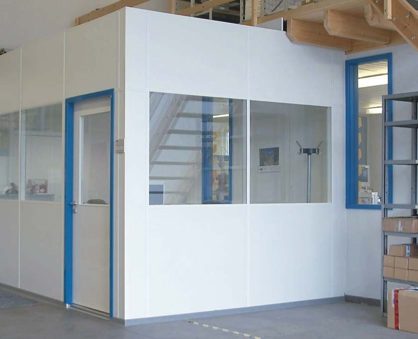 Auch besondere Anforderungen, wie ein erhöhter Schall- oder Brandschutz oder integrierte Sanitärräume, können mit passenden Komponenten wunschgemäß umgesetzt werden.